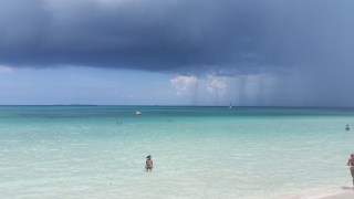 Uma tempestade tropical a aproximar-se de terra. Aquilo que nalguns locais do México tinha sido um furacão chegou a Cuba como uma violenta tempestade tropical.Nesta fotografia regista-se o momento em que o banhistas foram aconselhados a abrigar-se, ainda a tempestade vinha longe.